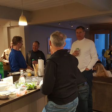 We had 23 people this trip. First day Monday, we had 2 to 3 inches of fresh snow. Rick took part of the group for a tour of Snowmass mountain and visited the three peaks and three main on mountain restaurants. Monday night there was an outdoor barbeque dinner when it started to snow. Tuesday morning we had around 10 inches of fresh powder and a group of us went up to the top of Big Burn for First Tracks an hour before the chairlifts opened to the public. Due to lack of crowds, we had fresh snow to almost lunch time. Tuesday evening there was a group dinner in Rick and Laurie's condo for appetizers, salad, lasagna, garlic bread, beer and wine.