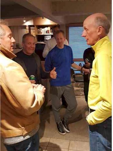 First thing on Monday, we had two groups for a Snowmass mountain tour. At 11:30, club members met at lunch which we did everyday. Later, Cindy gave yoga lessons. On Tuesday, a group went to Aspen Highlands and later we had our club dinner at The Stew Pot in Snowmass Village Mall. On Wednesday we had the Thigh Burner which Mike and Stephen Nelson finished 2nd and 3rd. On Thursday, a group went to Aspen Mountain to ski and later Cindy gave yoga lessons again. On Friday, we tried something new, The Condo Crawl! Members brought their leftover food to one of two condos at 6pm. Then a 7pn, everyone switched condos. Thank you for baking wonderful cookies Ann.