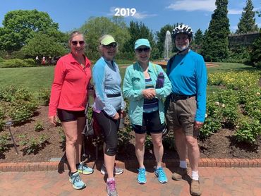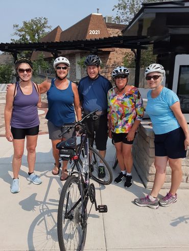 We had about 20 people. Around 2 o’clock, the bikers left to go down the bike trails. It was very hot, humid, and in the mid 90's. After the 2 hour bike ride, we had shish kebabs and played some outdoor games. Mike and Michelle supplied the main dish, drinks with some side dishes and we had a few people bring some desserts and salads. We had a little baker, Emma, who was able to bike 4 miles. Jim ended up having an issue with his bike chain falling off, but he was able to quickly catch up to everyone.