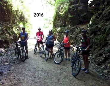We drove up to Monticello, Wisconsin (about a 2 hour drive) and biked on the Sugar River Trail into New Glarus where we toured around the town and ate lunch along the bike path. After eating lunch in New Glarus we took a trek to the old train tunnel which was about 1/4 mile long and pitch black inside along with being about 20 degrees cooler which felt good on a 85 degree day. Then we biked back to the vehicles. Total trip was around 15 miles.