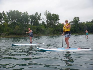 We had 10 Powder Dogs attend this event. Included was the paddleboard, paddle, vest and a 30 minute lesson. Afterwards, some of us went to The Quarry wakeboard park for an outdoor lunch. The Board House is one of the best places to paddle board. It's on a 330 acre lake with clear water that has 8 islands, 5 bays, plenty of fish and wildlife to see, and NO motor boats to create waves. Plus we had a perfect weather day.